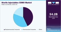 The global sterile injectables Contract Development and Manufacturing Organization (CDMO) market was valued at approximately USD 4.25 billion in 2024 and is projected to reach USD 7.29 billion by 2030, with a compound annual growth rate (CAGR) of 9.61% from 2025 to 2030. This growth is primarily fueled by the increasing pipeline and approvals for injectable medications.Pharmaceutical companies are increasingly focused on developing injectable drugs due to their multiple advantages, including rapid onset of action, precise dosing, and improved patient adherence.