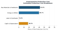 Total production costs for acepromazine production cost are divided across raw materials, energy, labor, and capital expenditure, with raw materials representing approximately 55 percent of total production cost, due to the high cost of feedstocks.