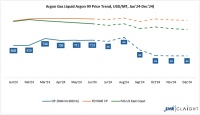 The global argon gas price trend experienced pronounced year-on-year declines in late 2024, driven primarily by sustained oversupply conditions and stable energy prices across major producing regions. According to data assessed under CIF Nhava Sheva benchmarks, liquid argon gas prices remained under heavy downward pressure throughout the final quarter of the year, reflecting weakened industrial demand and increased production capacity.In October 2024, argon gas prices dropped to 419 USD/MT, marking a steep 28% YoY decline compared to 586 USD/MT in October 2023. This significant reduction stemmed from consistent oversupply in international markets, as air separation units (ASUs) operated at high output levels despite softer demand from steelmaking, electronics, and metal fabrication industries. Additionally, stable energy prices contributed to reduced production costs, further anchoring lower price levels.