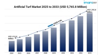 The artificial turf market is projected to grow from USD 3,751.8 million in 2024 to USD 5,765.8 million by 2033, at a CAGR of 4.9% during 2025-2033.