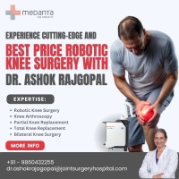 Knee replacement surgery is a medical procedure designed to alleviate pain and enhance the quality of life. In total joint replacement surgery, the damaged surfaces of the joint are excised and substituted with implants. The components for the femur (thigh bone) and tibia (leg bone) are constructed from a metal alloy that encases the ends of these bones. The insert or spacer placed between the two metal components functions as a cushion, providing a smooth gliding surface. Additionally, the patella (knee cap) is resurfaced using a specialized polyethylene material.Robotic knee surgery has emerged as a groundbreaking advancement in the field of orthopaedics, and best price robotic knee surgery with Dr. Ashok Rajgopal, offers some of the most competitive pricing for these innovative procedures. With a wealth of experience and a commitment to patient care, Patient can get Dr. Ashok Rajgopal immediate appointment number and benefit from it as he utilizes state-of-the-art robotic technology to enhance precision and minimize recovery time for patients undergoing surgery. This approach not only improves surgical outcomes but also significantly reduces the risk of complications, making it an attractive option for those seeking best price robotic knee surgery with Dr. Ashok Rajgopal. Patients can expect a comprehensive evaluation and personalized treatment plans tailored to their specific needs, all while benefiting from the best price knee robotic surgery with Dr. Ashok Rajgopal is known for in the realm of medical tourism.