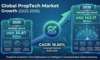 The global PropTech market reached USD 30.87 billion in 2025 and is expected to expand rapidly to USD 142.17 billion by 2035, advancing at a CAGR of 16.50%. Several forces are propelling this growth:Digitalisation of Real Estate Operations: Property managers and developers are adopting digital leasing tools, automated workflows, and cloud-based management systems to streamline operations.