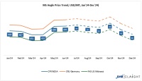 However, the trend reversed in December 2024, with MS Angle prices dropping to 654 USD/MT, down from 678 USD/MT in December 2023, resulting in a -4% YoY decline. The dip was largely driven by a slowdown in domestic and export demand, coupled with cautious buying sentiment from fabricators and distributors ahead of year-end inventory adjustments.