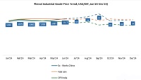 In December 2024, phenol prices stood at 1090 USD/MT, just marginally lower than the 1100 USD/MT recorded in December 2023—a mild 0.9% YoY decrease. This comparatively stable performance was supported by recovering benzene feedstock prices and improved market sentiment as industrial activity showed signs of gradual revival across Asia. Export demand also strengthened modestly, adding additional support to phenol pricing during the final month of the year.