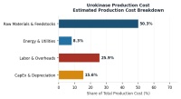 Total production costs for urokinase production cost are divided across raw materials, energy, labor, and capital expenditure, with raw materials representing approximately 50 percent of total production cost, due to high feedstock costs.